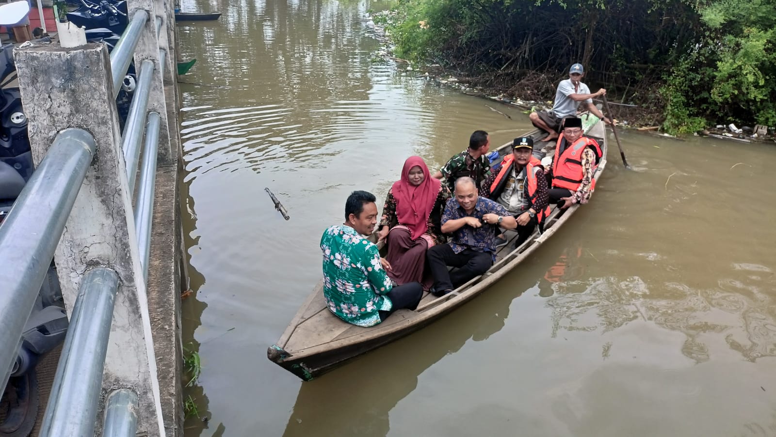 Bersama Camat Danau Sipin, Lurah Legok dan Kepala Puskesmas Putri Ayu, Danramil 415-09/Telanaipura Mayor Arm Irfan Kito menyusuri lokasi banjir dengan menggunakan perahu, Kamis (11/01/2024) karena akses jalan tidak bisa dilalui dengan kendaraan bermotor.