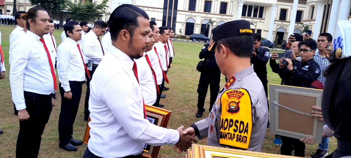 Atas prestasi tersebut, Kapolda Jambi Irjen Pol Rusdi Hartono langsung memberikan penghargaan di lapangan Mapolresta Jambi, Senin (15/1/2024).