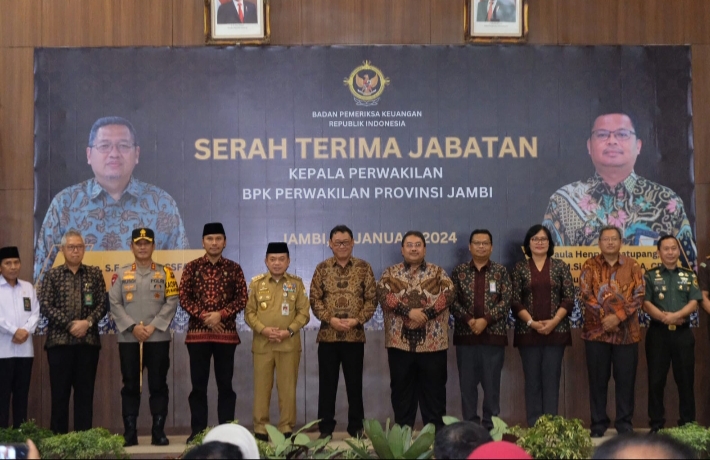 Rangkaian kegiatan dilakukan hingga penandatanganan surat serah terima jabatan Kepala Perwakilan BPK Perwakilan Provinsi Jambi dari Rio Tirta, kepada Paula Hendry Simatupang.