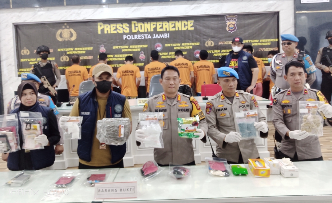 JAMBI.PILARDAERAH.COM — Satresnarkoba Polresta Jambi kembali berhasil mengungkap 7 kasus narkotika berbagai jenis. Tidak hanya itu, 10 orang tersangka juga berhasil diamankan.