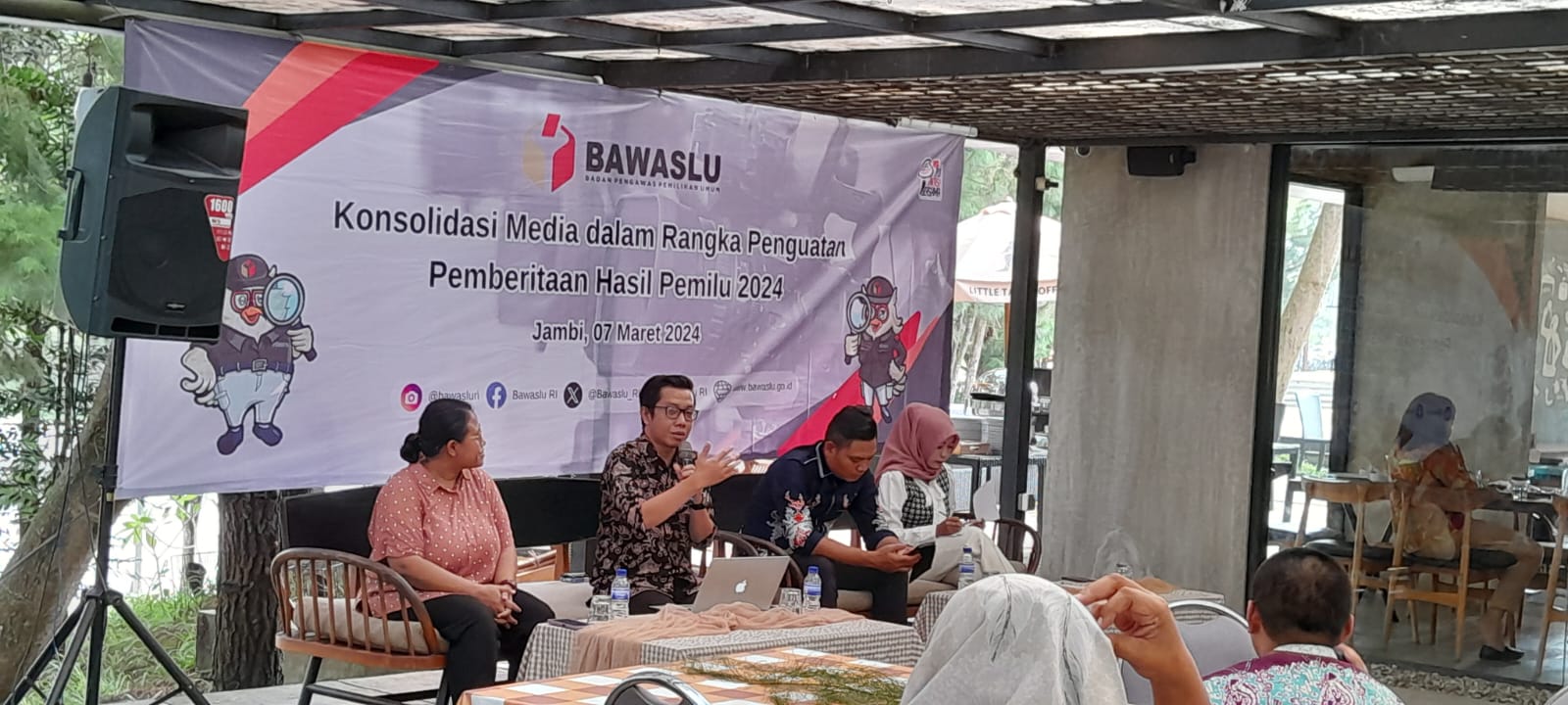 Acara yang berlangsung Kamis siang (7/3/2024) di salah satu café di kawasan Citra Raya Mendalo, Kabupaten Muarojambi, Jambi ini, dihadiri oleh Anggota Bawaslu Provinsi Jambi Rofiqoh Pebrianti dan Indra Tritusian dan Tim Humas Bawaslu RI, dengan menghadirikan narasumber Dian Dewi Purnamasari (Jurnalis Kompas) dan Heri Novealdi (Ahli Pers).