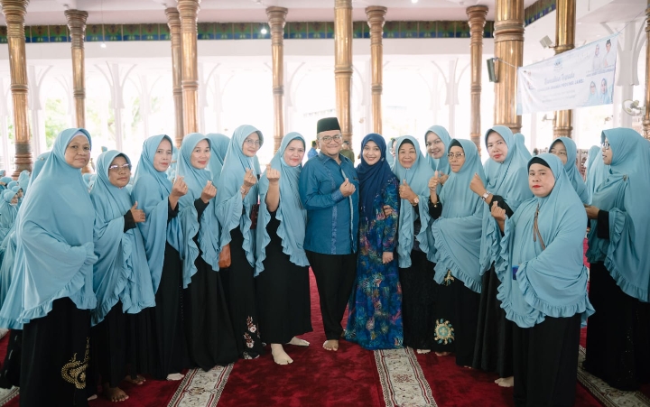 JAMBI.PILARDAERAH.COM — Dr dr H Maulana MKM didampingi isteri dr Nadiyah kembali melakukan Safari Ramadan bersama ibu ibu pengajian Amanah di Masjid Agung Al-Falah, Kota Jambi, Sabtu pagi (16/03/2024).