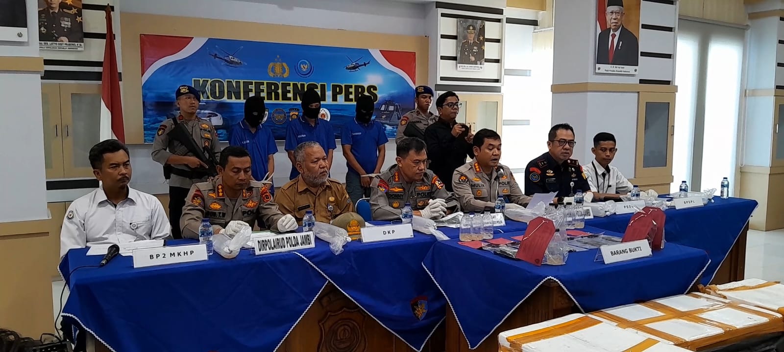 “Di TKP kedua ini, petugas juga mengamankan dua orang tersangka dengan inisial ATH dan A,” tutur Donny didampingi Kabid Humas Polda Jambi Kombes Pol Mulia Prianto dan Dirpolairud Polda Jambi Kombes Pol Agus Tri Waluyo.
