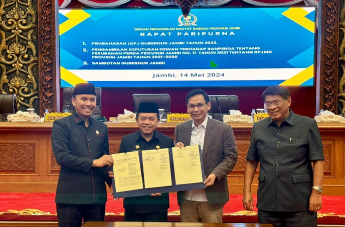 Pada kesempatan ini, turut dilakukan penandatanganan persetujuan bersama antara pimpinan DPRD Provinsi Jambi dan Gubernur Jambi.