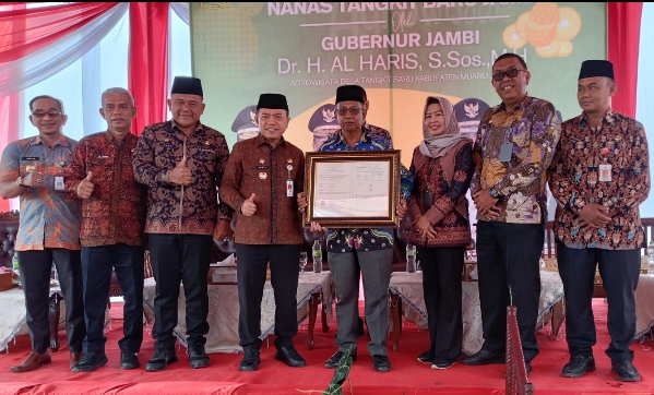 JAMBI.PILARDAERAH.COM – Pemerintah Provinsi Jambi menyerahkan Sertifikat Indikasi Geografis untuk Komoditas Nanas yang terletak di Agrowisata Desa Tangkit Baru, Kecamatan Sungai Gelam, Kabupaten Muaro Jambi, Kamis (16/05/2024).