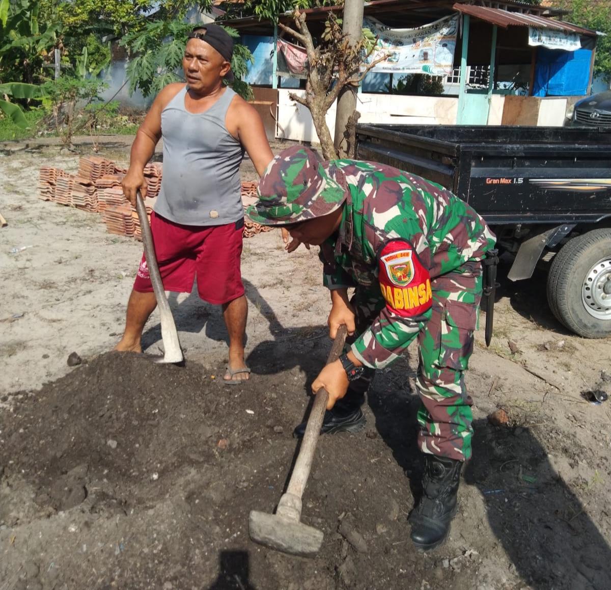 Dalam rangka menciptakan kedekatan dengan warganya, Babinsa Koramil 415-11/Jambi Timur Pelda Eddy Tambunan melakukan komsos bersama warga di RT. 32 Kel. Talang Banjar Kec. Jambi Timur kota Jambi, yakni membantu pembuatan pos ronda (pos kamling), Minggu (26/05/2024).