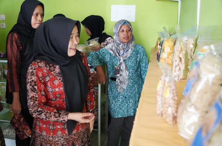 Di Rumah Produksi Batik ini Ketua TP-PKK beserta rombongan melihat secara langsung proses pembuatan batik oleh pengrajin batik di desa tersebut. Selain itu Ketua TP-PKK Provinsi Jambi juga berdialog bersama para pengrajin batik lokal.