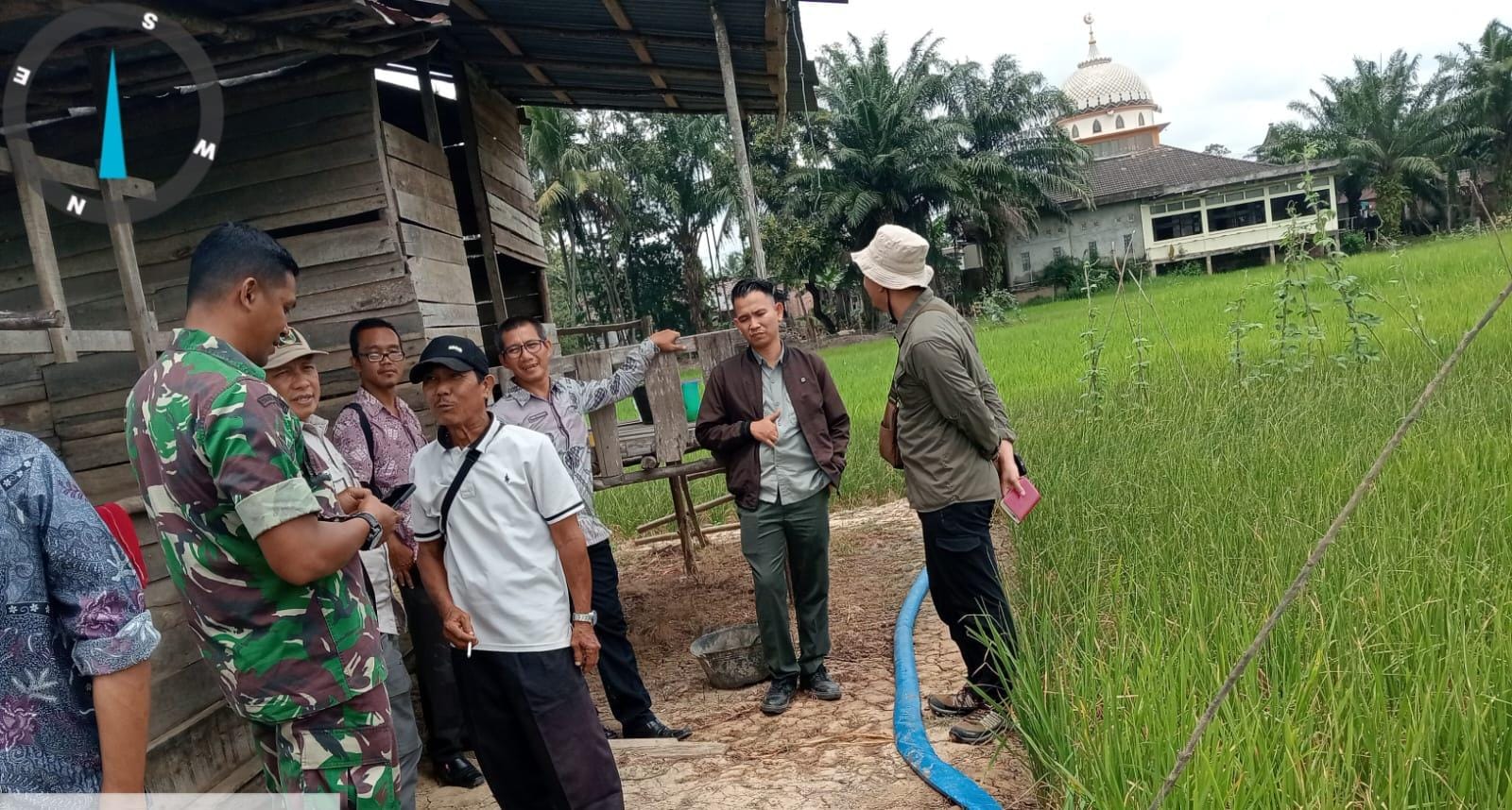 Babinsa Koramil 415-05/Sengeti, Kodim 0415/Jambi Sertu Edi Bustami, mendampingi tim dari Dirjen Hortikultura dalam pengecekan pompanisasi di Kelompok Tani Aur Gading, Desa Berembang, Kecamatan Sekernan, Kabupaten Muaro Jambi, Kamis (08/08/2024).