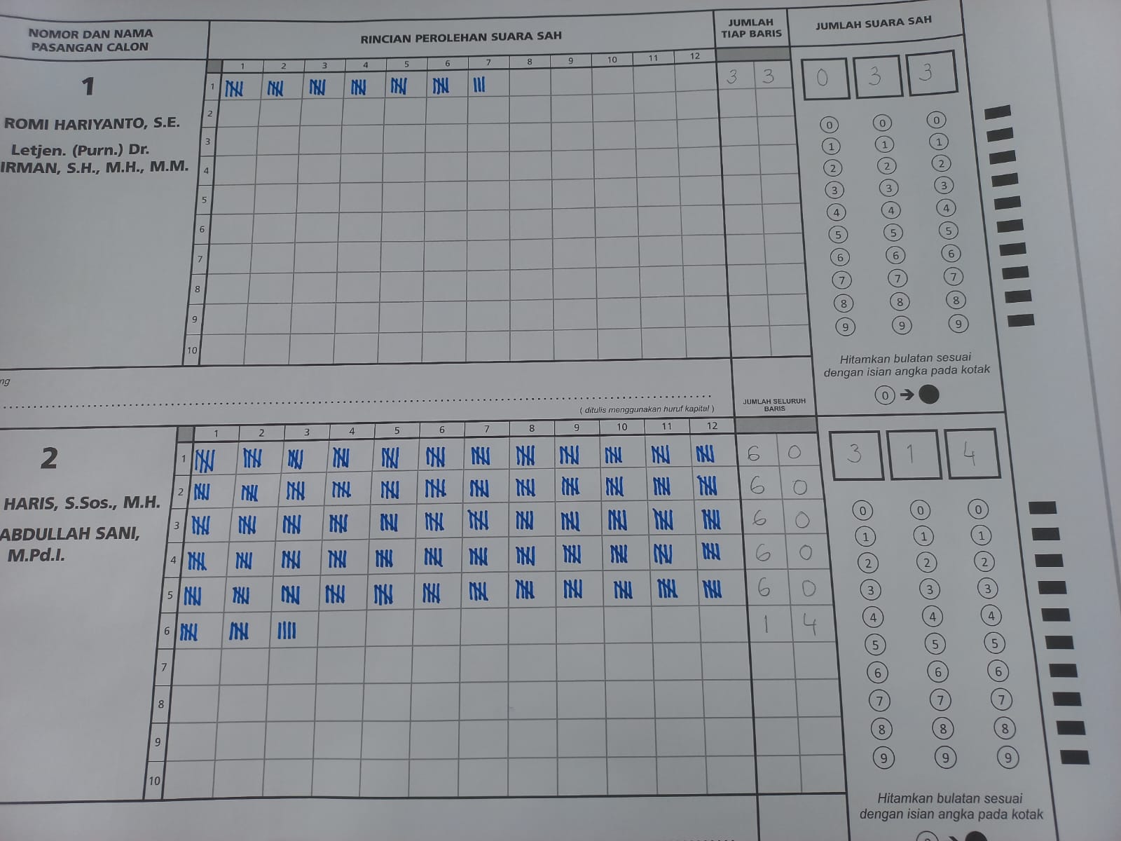 Data yang didapatkan dari hasil perhitungan pasangan Haris-Sani meraih 314 suara, sementara itu pesaingnya RH-Sudirman meraih 33 suara.