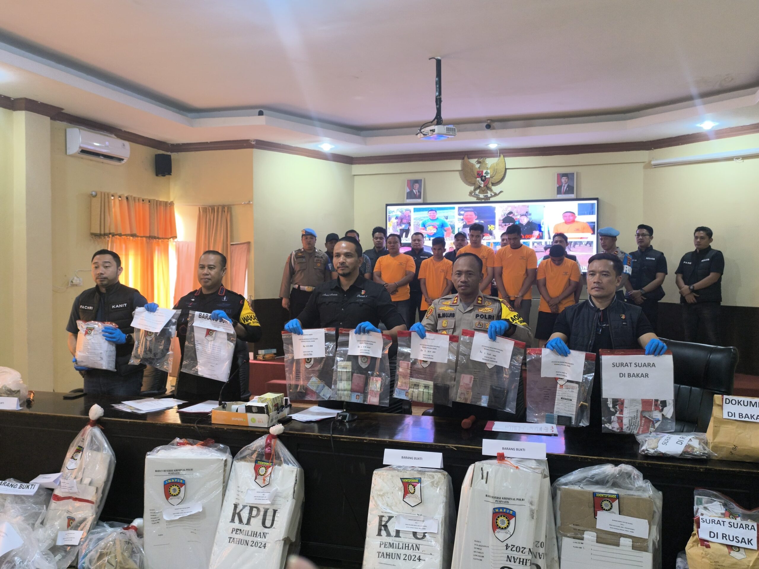 KERINCI.PILARDAERAH.COM — Tim Resmob Polda Jambi dan Opsnal Polres Kerinci, berhasil menangkap 4 orang pelaku pengerusakan kotak suara di TPS Kota Sungai Penuh.