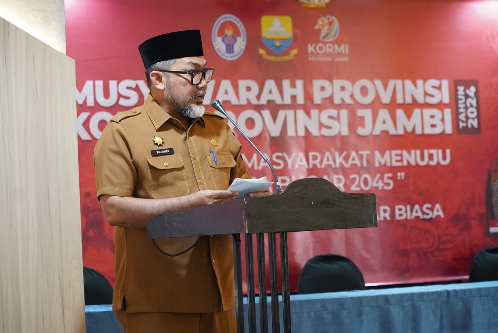 Dalam sambutan dan arahannya Sekda Sudirman juga menyampaikan apresiasinya kepada pihak-pihak yang telah mendukung terselenggaranya kegiatan Musyawarah Provinsi KORMI Provinsi Jambi tahun 2024.