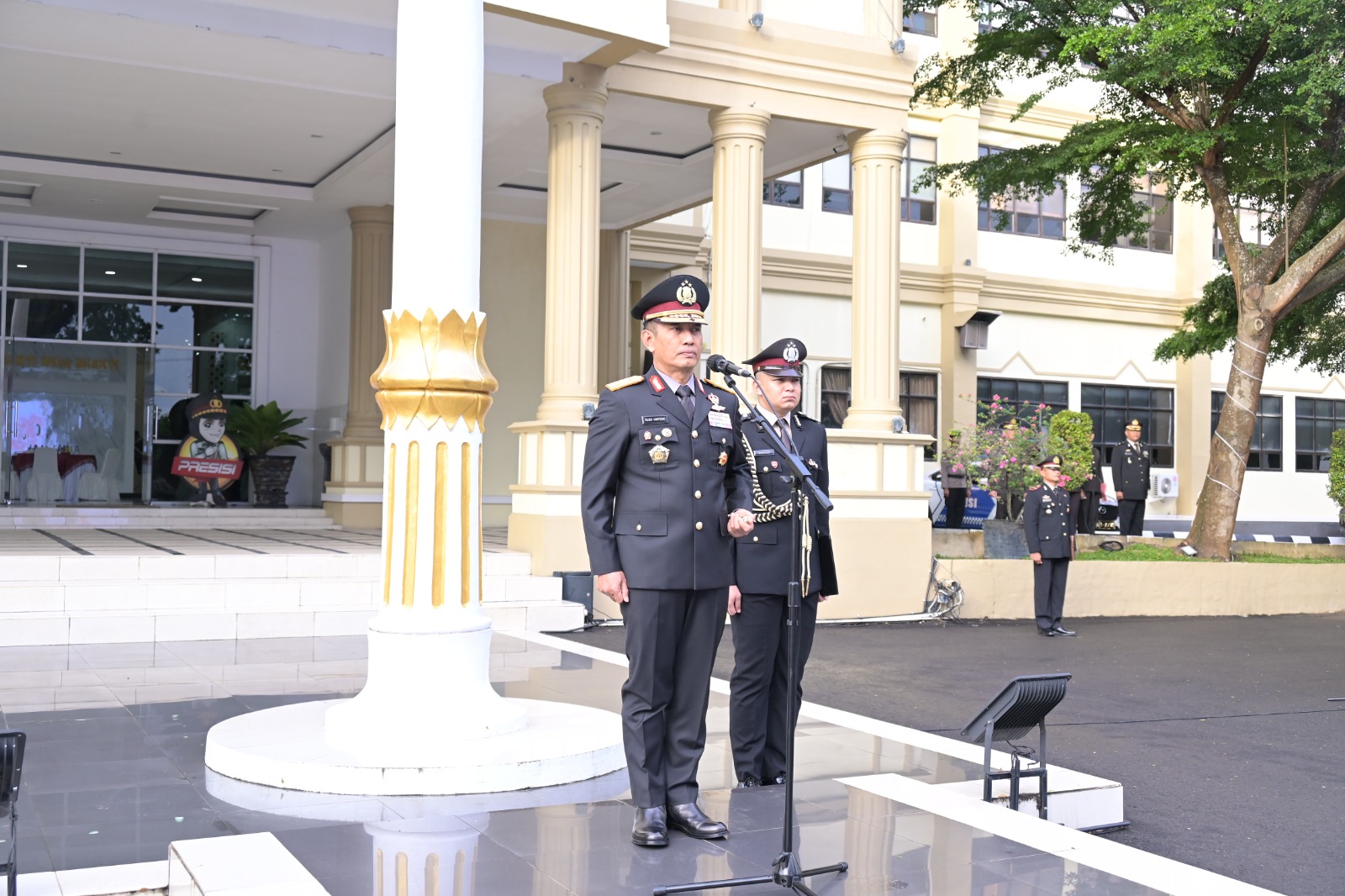 Upacara tersebut dipimpin langsung oleh Kapolda Jambi, Irjen Pol. Rusdi Hartono dan diikuti juga oleh Wakapolda Jambi Brigjen Pol Edi Mardianto, Irwasda Polda Jambi Kombes Pol Jannus Parlindungan Siregar, serta para Pejabat Utama (PJU) Polda Jambi dan personel Polda Jambi yang terlibat dalam upacara.