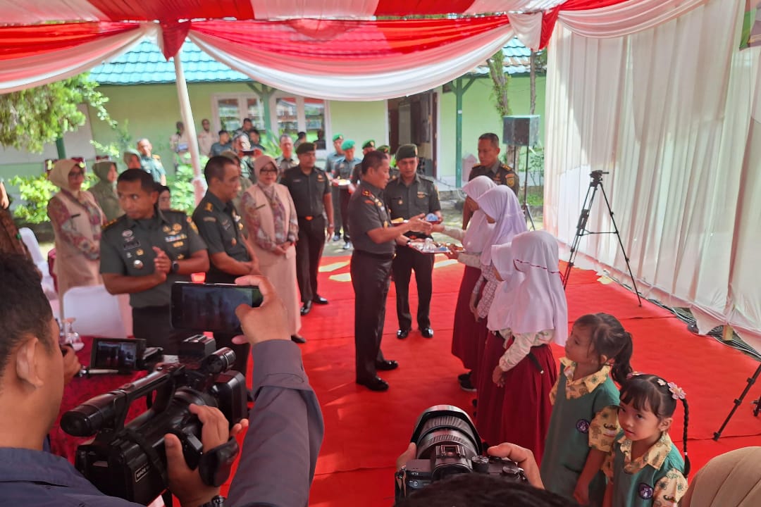 Dalam kesempatan itu, Danrem 042/Gapu Brigjen TNI Heri Purwanto memberikan makan siang bergizi kepada siswa dan siswi.