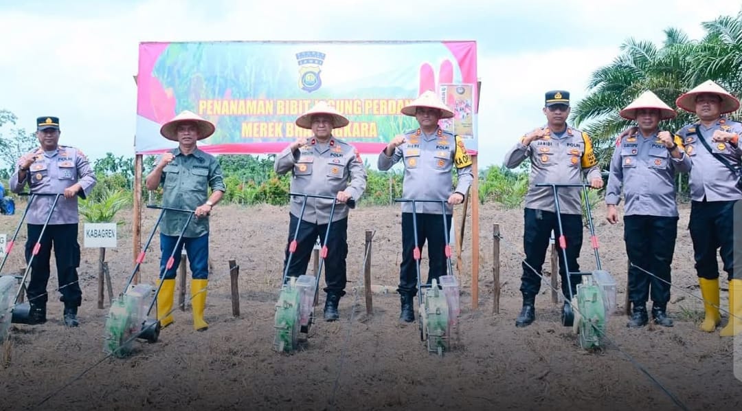 JAMBI.PILARDAERAH.COM — Wakapolda Jambi Brigjen Pol. Edi Mardianto didampingi Kapoles Muaro Jambi AKBP Heri Suprawan melaksanakan penanaman benih jagung di Desa Sungai Duren Kabupaten Muaro Jambi pada Senin, (10/02/2025)