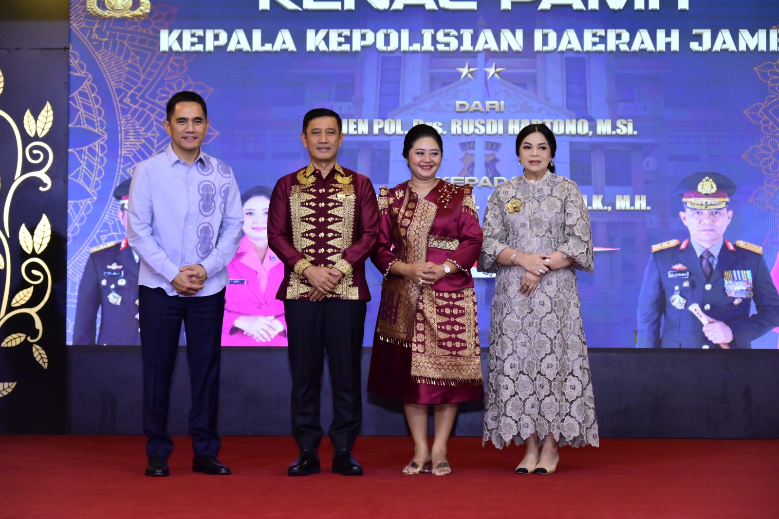 JAMBI.PILARDAERAH.COM — Acara pisah sambut Kapolda Jambi yang baru, Irjen Pol Krisno Halomoan Siregar, S.I.K., M.H., dengan Kapolda yang lama, Irjen Pol Drs. Rusdi Hartono, M.Si., berlangsung meriah di Ruang Auditorium Rumah Dinas Gubernur Jambi, pada Rabu (19/3/2025).