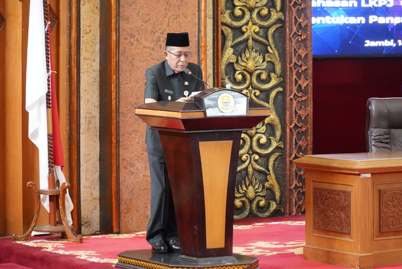JAMBI.PILARDAERAH.COM — Gubernur Jambi Dr. H. Al Haris, S.Sos. MH menyampaikan, sebagaimana diketahui bahwa pada Rapat Paripurna DPRD pada tanggal 9 April 2025, Fraksi-fraksi Dewan telah menyampaikan Pandangan Umum terhadap Laporan Keterangan Pertanggungjawaban (LKPJ) Gubernur Jambi Tahun 2024. Hal tersebut disampaikan Gubernur saat memberikan Jawaban Pemerintah Atas Pandangan Umum Fraksi-Faraksi DPRD Provinsi Jambi pada, terhadap Laporan Keterangan Pertanggungjawaban (LKPJ) Gubernur Jambi Tahun 2024, bertempat di Ruang Sidang Utama Gedung Dewan Perwakilan Rakyat (DPRD) Provinsi Jambi, Senin (14/04/2025) pagi.