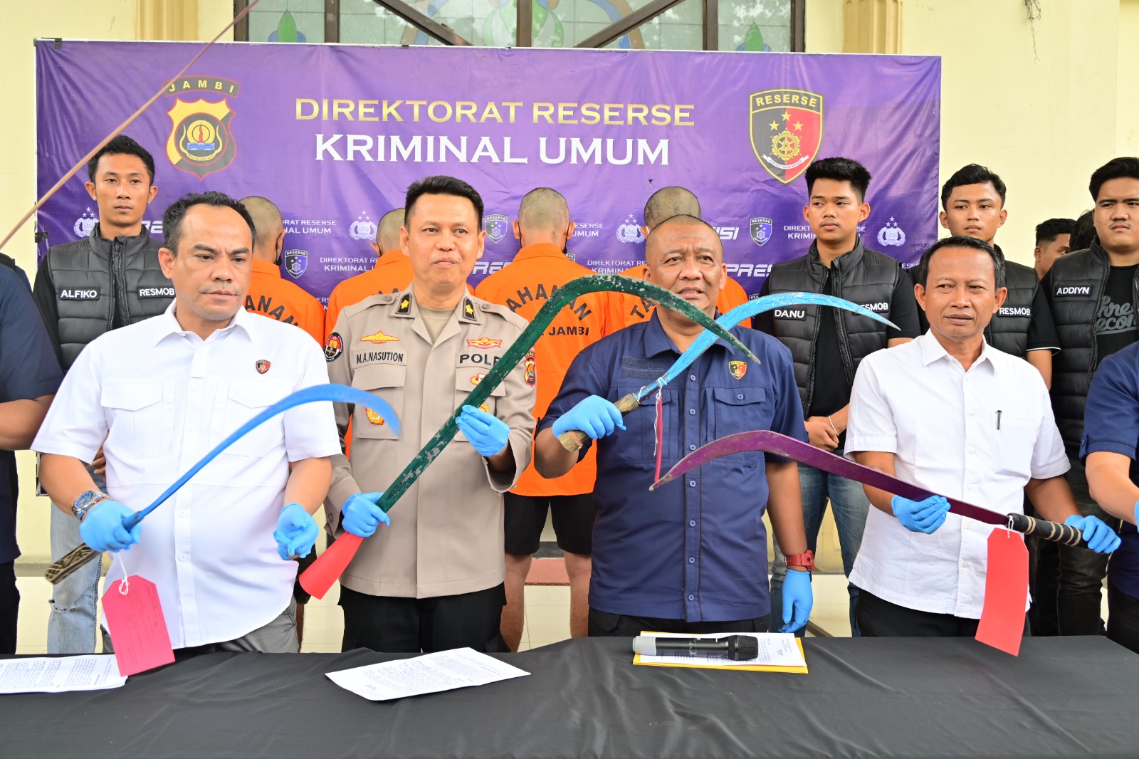 JAMBI.PILARDAERAH.COM – Direktorat Reserse Kriminal Umum (Ditreskrimum) Polda Jambi berhasil mengamankan lima pemuda yang kedapatan membawa senjata tajam saat hendak melakukan aksi tawuran.