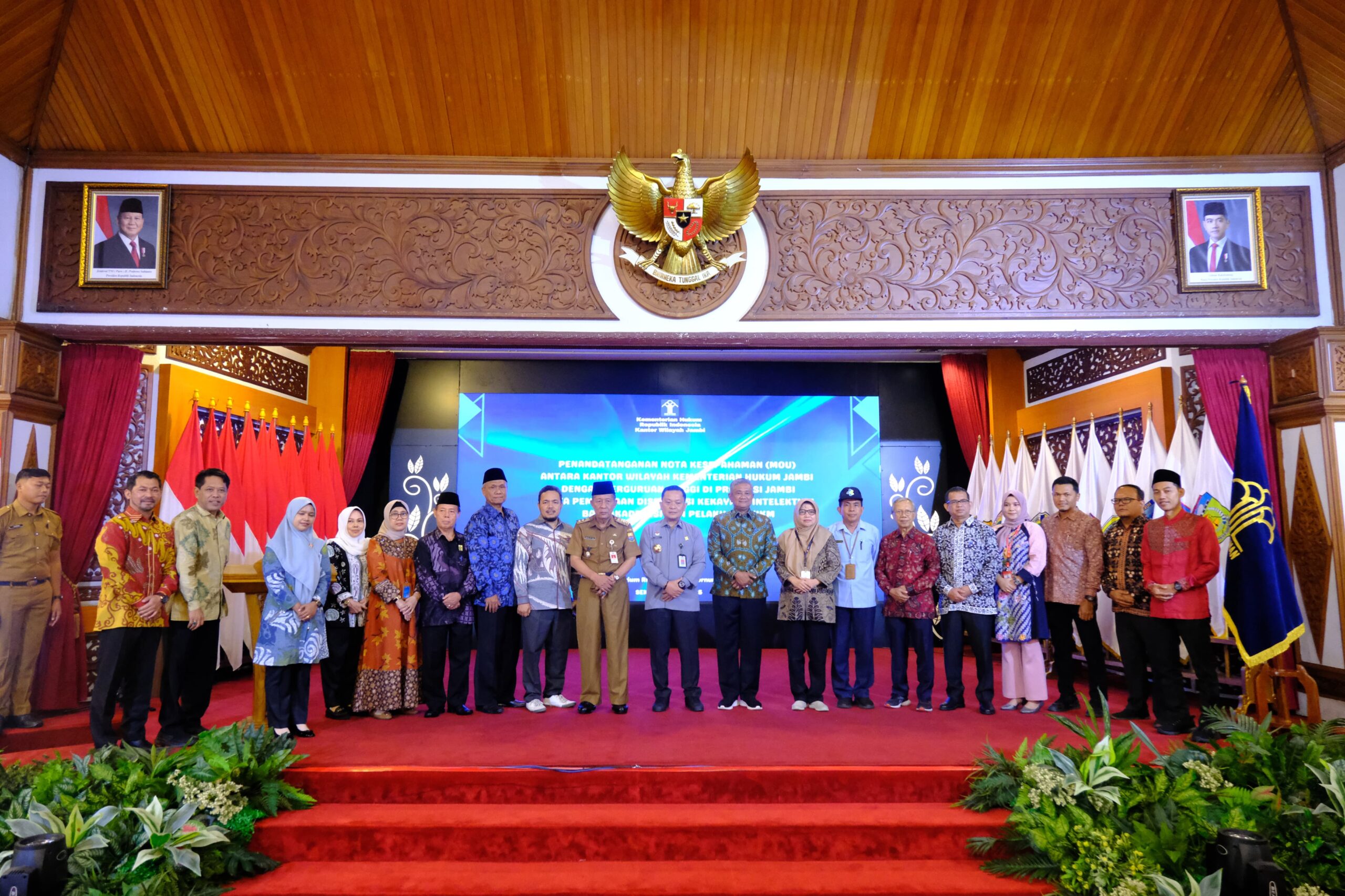 Dukungan tersebut disampaikan Wagub saat Penandatanganan Nota Kesepahaman Memorandum of Understanding (MoU) antara Kantor Wilayah Kementerian Hukum Jambi dengan Perguruan Tinggi Di Provinsi Jambi serta Pembukaan Diseminasi Kekayaan Intelektual Bagi Akademisi dan Pelaku UKM/UMKM, bertempat di Auditorium Rumah Dinas Gubernur Jambi, Senin (21/04/2025) pagi.