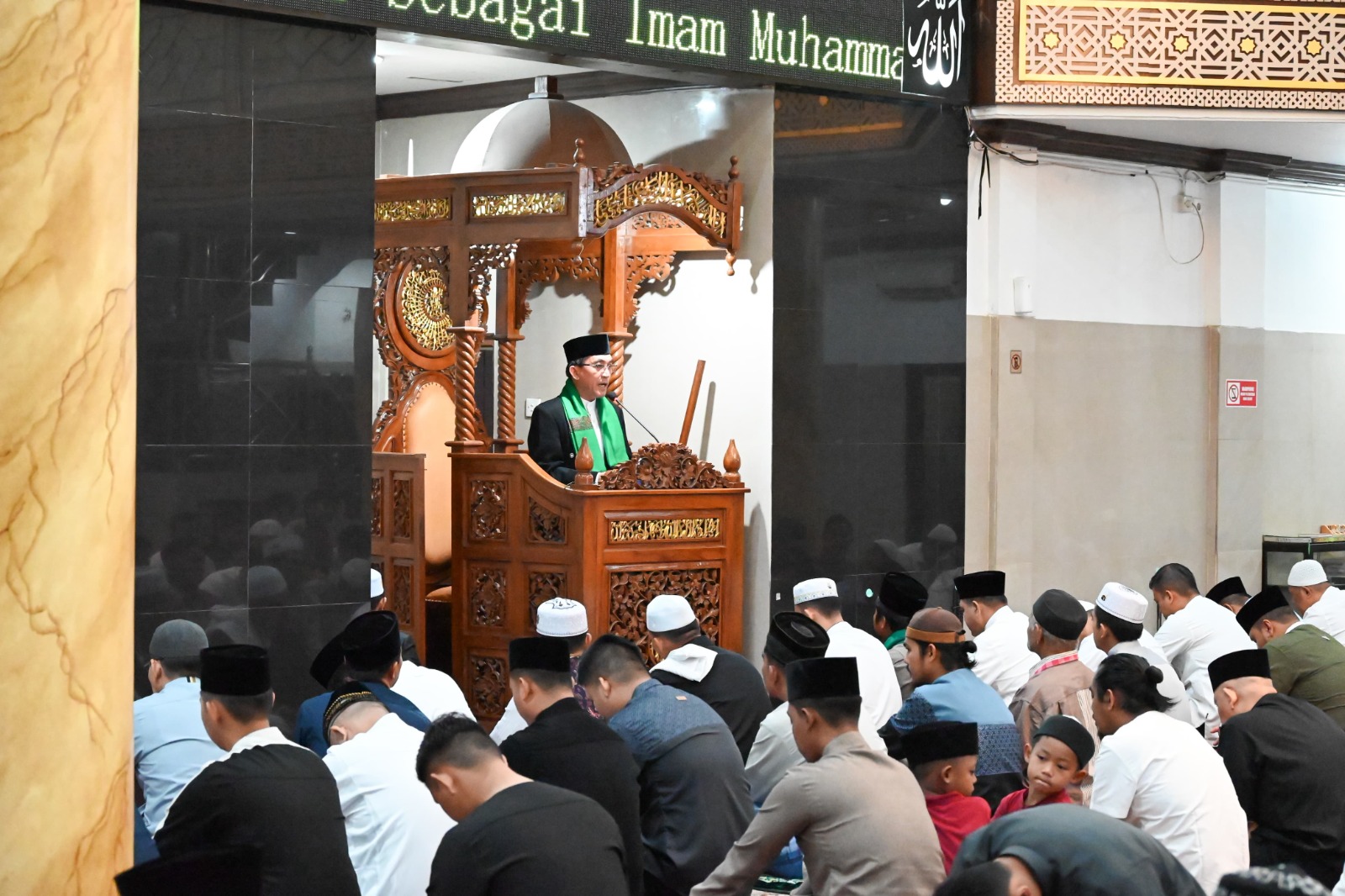 Wakapolda Jambi Brigjen Pol. M.Mustaqim menyampaikan rasa syukur atas nikmat Allah SWT sehingga seluruh jamaah dapat berkumpul dan menunaikan ibadah dengan lancar.