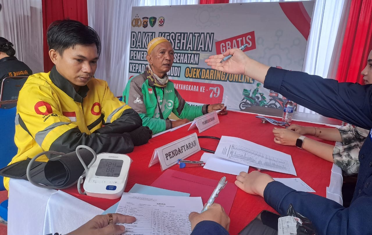 JAMBI.PILARDAERAH.COM — Rumah Sakit Bhayangkara bersama Bid Dokkes Polda Jambi menggelar Layanan Kesehatan Gratis kepada Pengemudi Ojek Online pada Kamis, (12/06/2025).