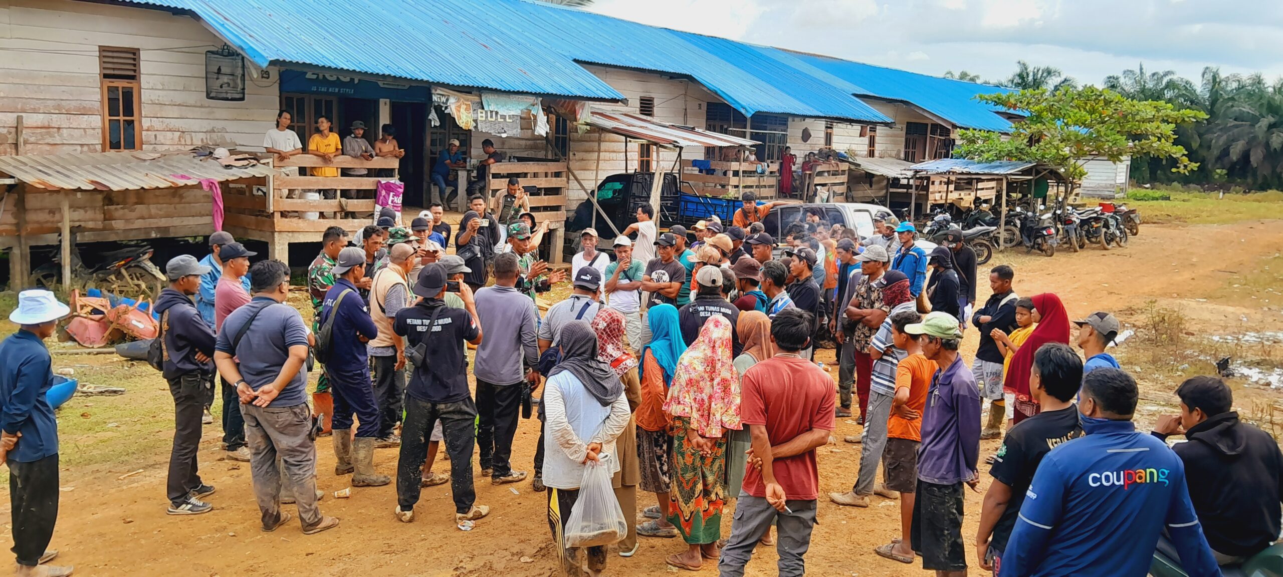 MUAROJAMBI.PILARDAERAH.COM — Ratusan warga Desa Sogo, Kumpeh Ilir, Kabupaten Muarojambi, Jambi menggeruduk kehadiran puluhan TNI di camp perkebunan kelapa milik PT Bukit Bintang Sawit (BBS) di wilayah tersebut.