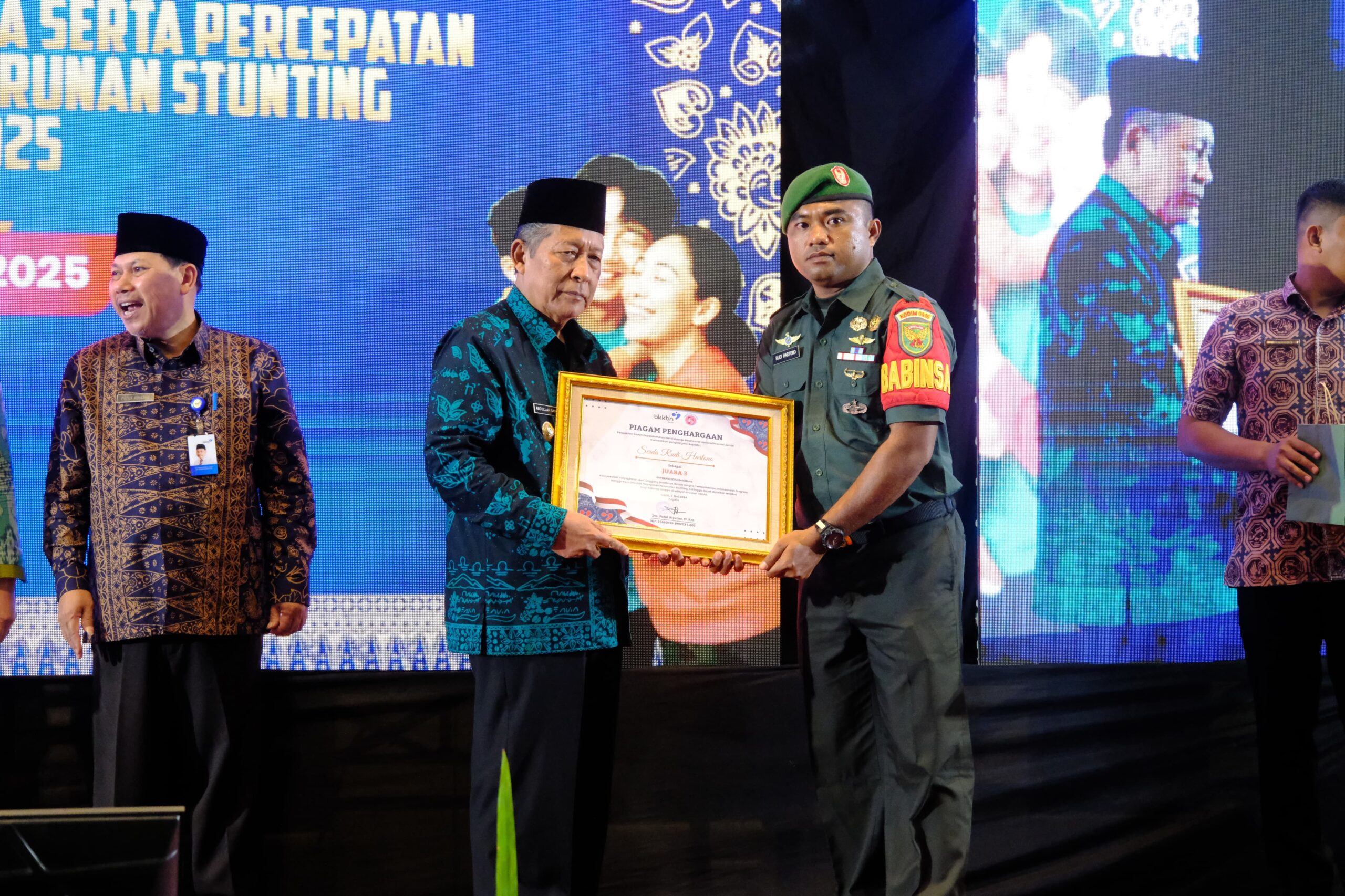 Hadir pada kesempatan tersebut Pejabat Utama dari BKKBN, Inspektur Utama Kementerian Kependudukan dan Pembangunan Kependudukan/BKKBN, Dr. Ucok Abdulrauf Damenta, M.Ag, Rer.Publ, Kepala Perwakilan BKKBN Provinsi Jambi Drs. Putut Riyatno, Perwakilan Forkompinda serta Kepala Dinas/Badan terkait.