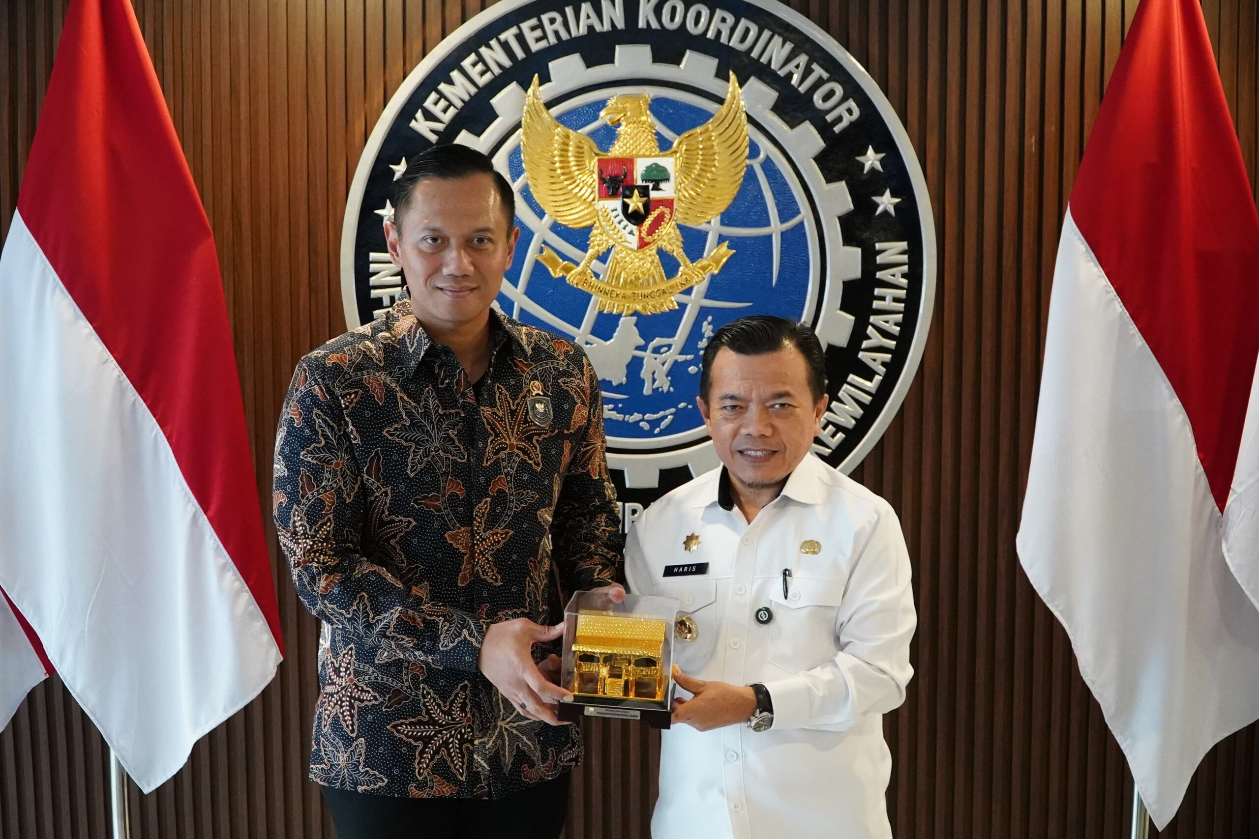 Dihadapan Menko AHY Gubernur Al Haris memaparkan beberapa persoalan yang dihadapi Provinsi Jambi dalam pembangunan infrastruktur.
