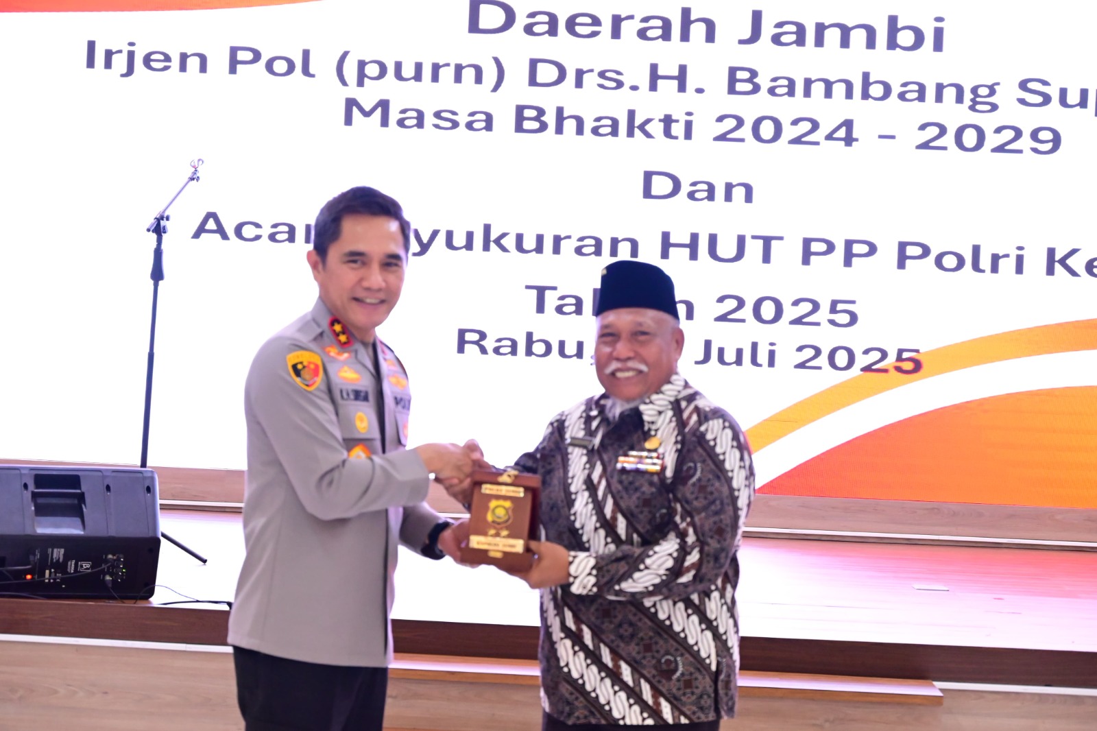 JAMBI.PILARDAERAH.COM — Kapolda Jambi Irjen Pol. Krisno H. Siregar memimpin Pelantikan Ketua Persatuan Purnawirawan Polri (PP Polri) Daerah Jambi masa bakti 2024-2029 serta Penyerahan Pataka dan Syukuran HUT ke-26 PP Polri tahun 2025 pada Rabu (16/07/2025).