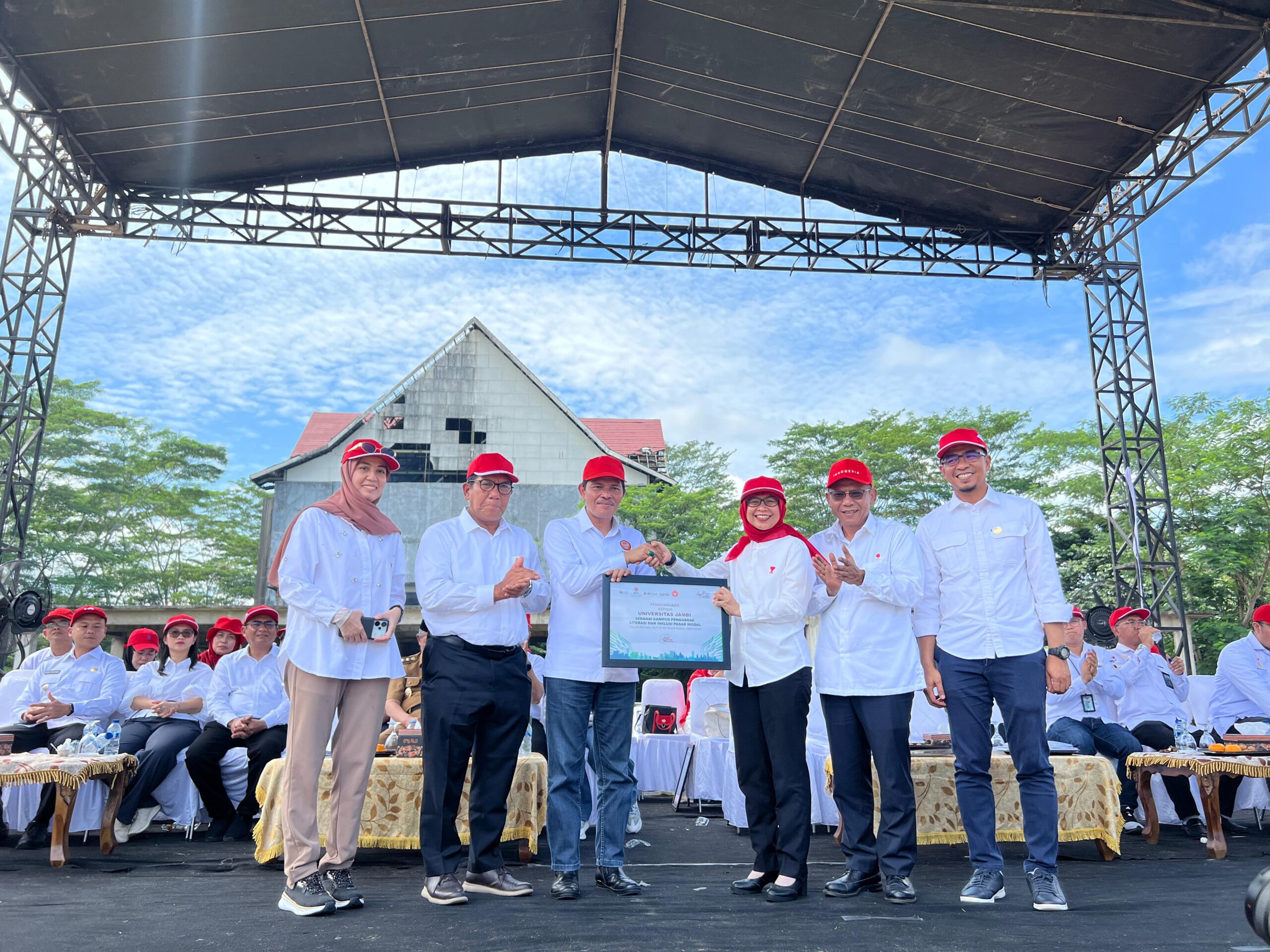 Penyerahan dua piagam penghargaan Rekor Muri tersebut diterima langsung oleh Rektor Universitas Jambi Prof. Dr. Helmi, S.H., M.H., Direktur Analis Informasi dan Manajemen Krisis Pasar Modal, Keuangan Derivatif, dan Bursa Karbon Otoritas Jasa Keuangan Sujanto, serta Kepala Otoritas Jasa Keuangan Provinsi Jambi Yan Iswara Rosya.