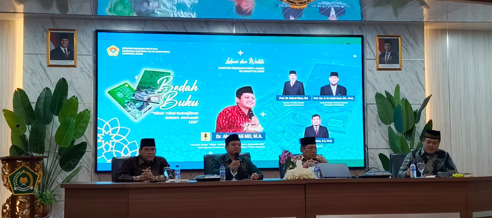 JAMBI.PILARDAERAH.COM – Aula Kanwil Kementerian Agama (Kemenag) Provinsi Jambi di kawasan Telanaipura menjadi saksi terselenggaranya kegiatan bedah buku “Nilai-nilai Kebajikan Dalam Jamaah LDII” karya Ahmad Ali, Sabtu (30/8/2025). Acara ini diikuti sekitar 100 peserta dari berbagai instansi pemerintah, organisasi keagamaan, organisasi kemasyarakatan, perguruan tinggi, serta pengurus DPD LDII kabupaten/kota se-Provinsi Jambi.