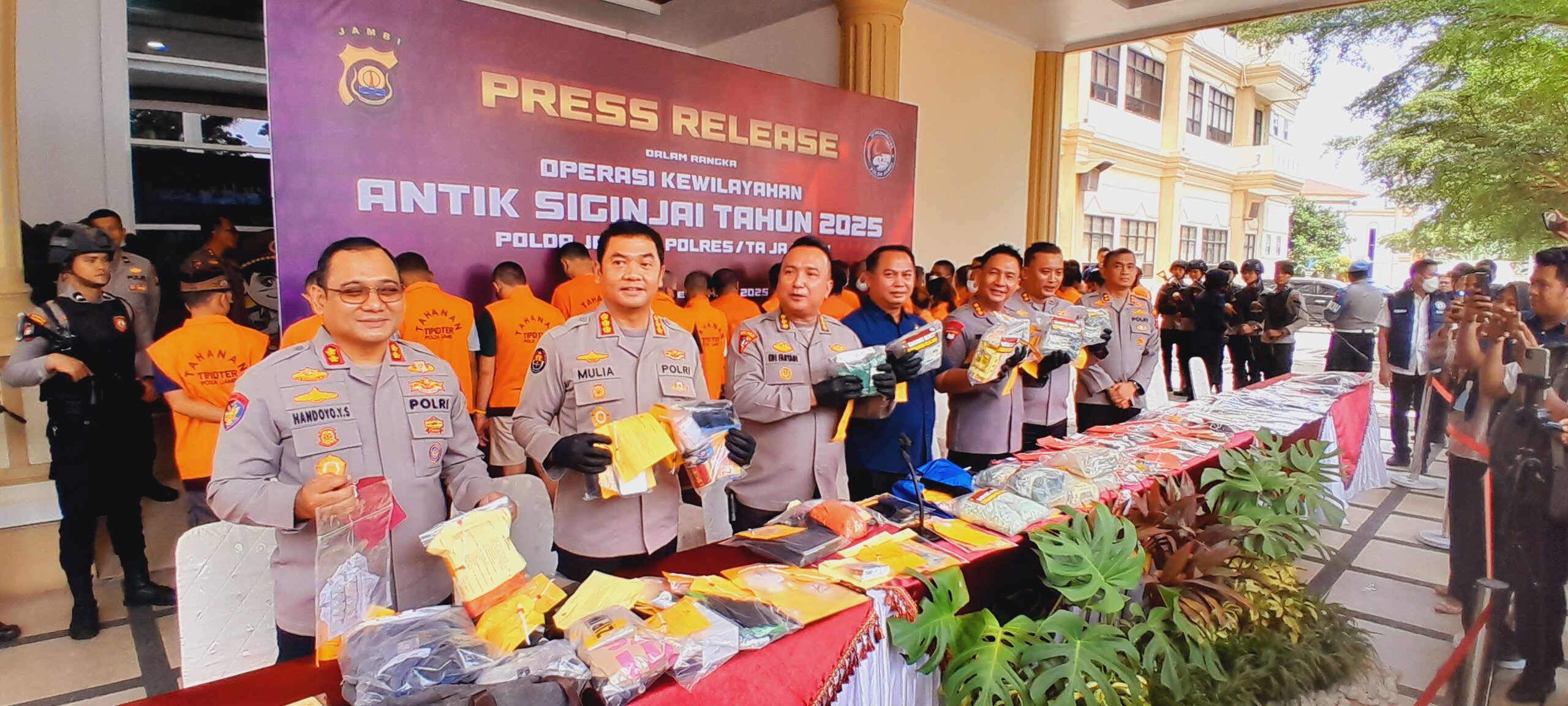 JAMBI.PILARDAERAH.COM – Dirresnarkoba Polda Jambi berhasil membekuk ratusan tersangka narkoba di wilayah Polda Jambi dalam Operasi Antik Siginjai 2025 yang digelar dari 25 Agustus hingga 13 September 2025.