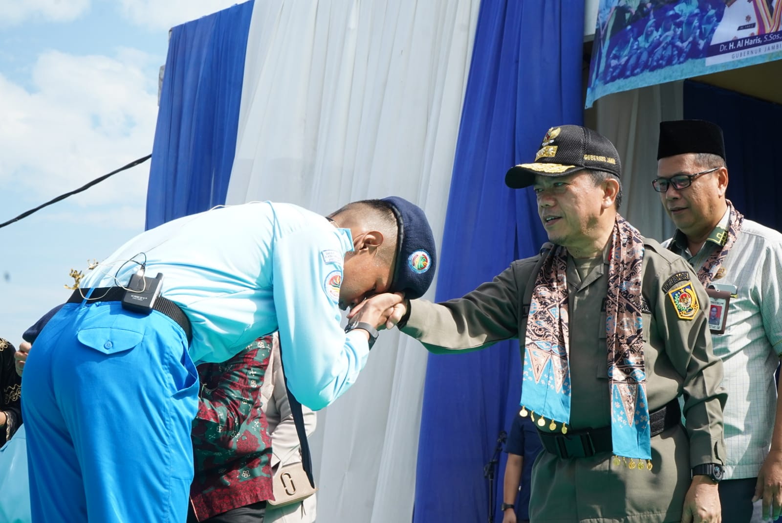 Kepada para pamong dan tenaga pendidik, Gubernur Al Haris menitipkan pesan agar mendidik siswa dengan penuh tanggung jawab, keikhlasan, dan tanpa diskriminasi.