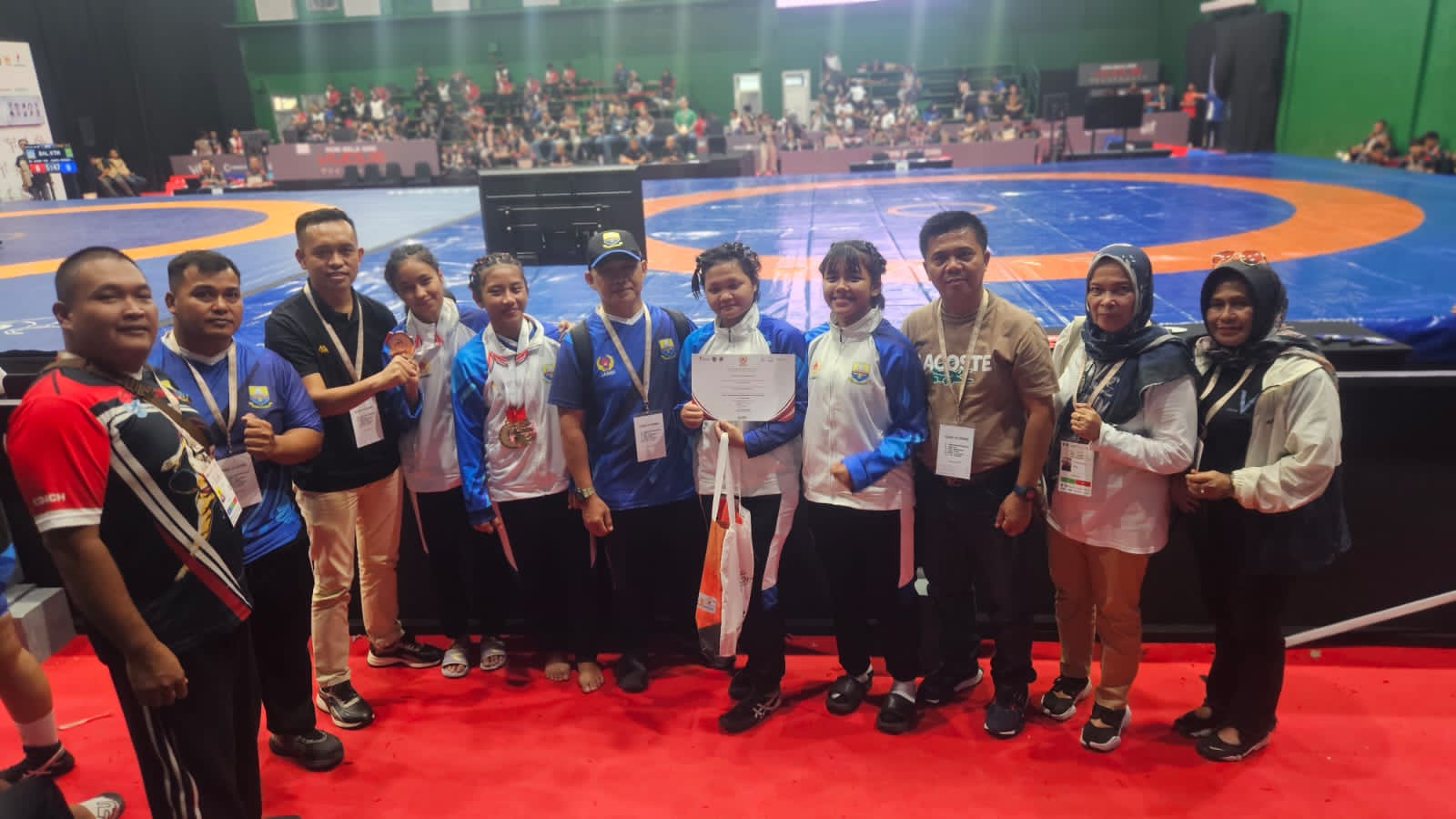 KUDUS.PILARDAERAH.COM — Tiga atlet gulat putri Jambi berhasil menyumbangkan tiga medali perunggu pada PON Bela Diri, yang berlangsung di GOR Djarum, Kudus, Jawa Tengah, 11-26 Oktober 2025.