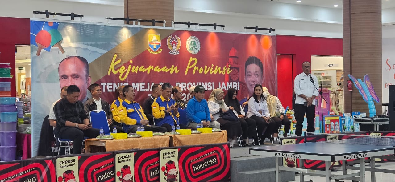 Hadir dalam acara pembukaan Kejurprov Tenis Meja Jambi, antara lain Ketua KONI Kota Jambi dan Ketum Pengprov PTMSI Jambi Budiman Tansri.