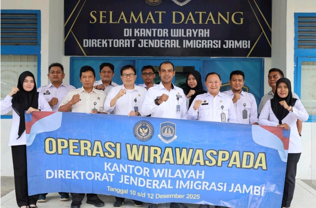 JAMBI.PILARDAERAH.COM — Kantor Wilayah Direktorat Jenderal Imigrasi Jambi melaksanakan Operasi “Wirawaspada” Tahun 2025 sebagai bagian dari pengawasan orang asing secara serentak di seluruh wilayah Indonesia. Operasi ini bertujuan menjaga stabilitas dan kondusivitas nasional serta menegakkan hukum keimigrasian.