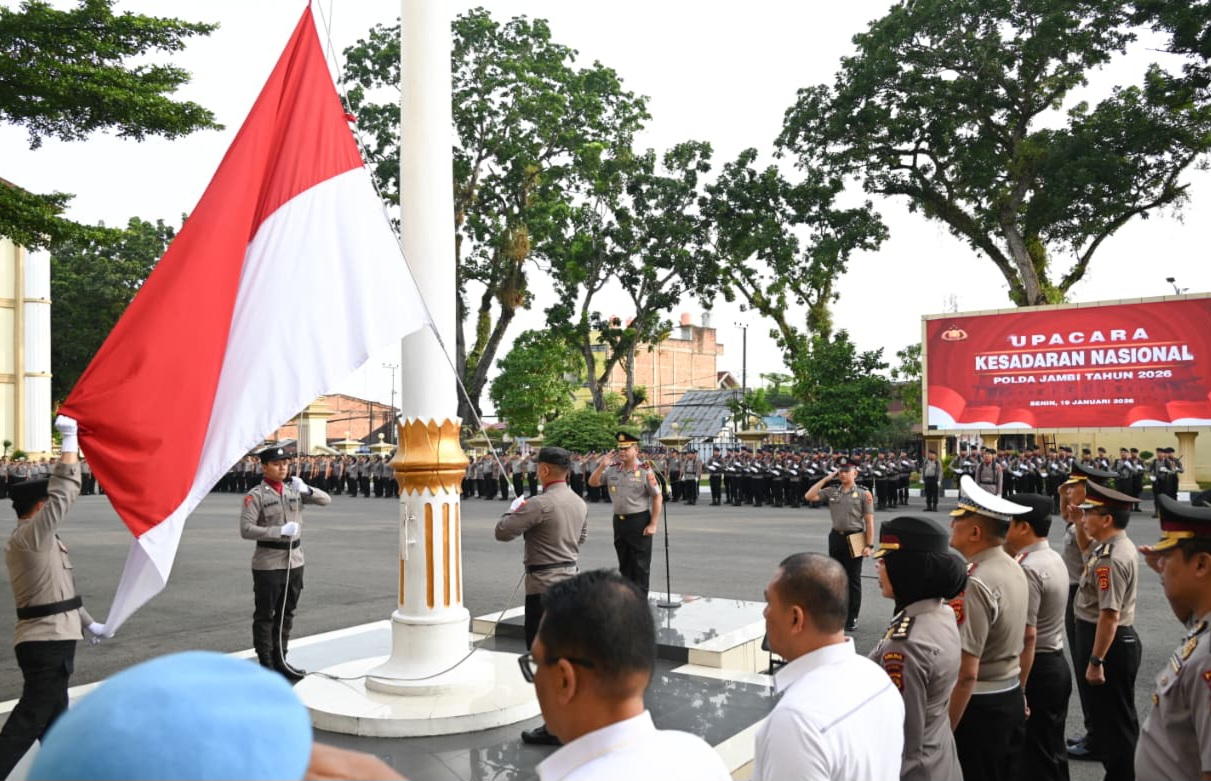 JAMBI.PILARDAERAH.COM – Kepolisian Daerah (Polda) Jambi melaksanakan Upacara Kesadaran Nasional Tahun 2026 pada Senin (19/1/2026).