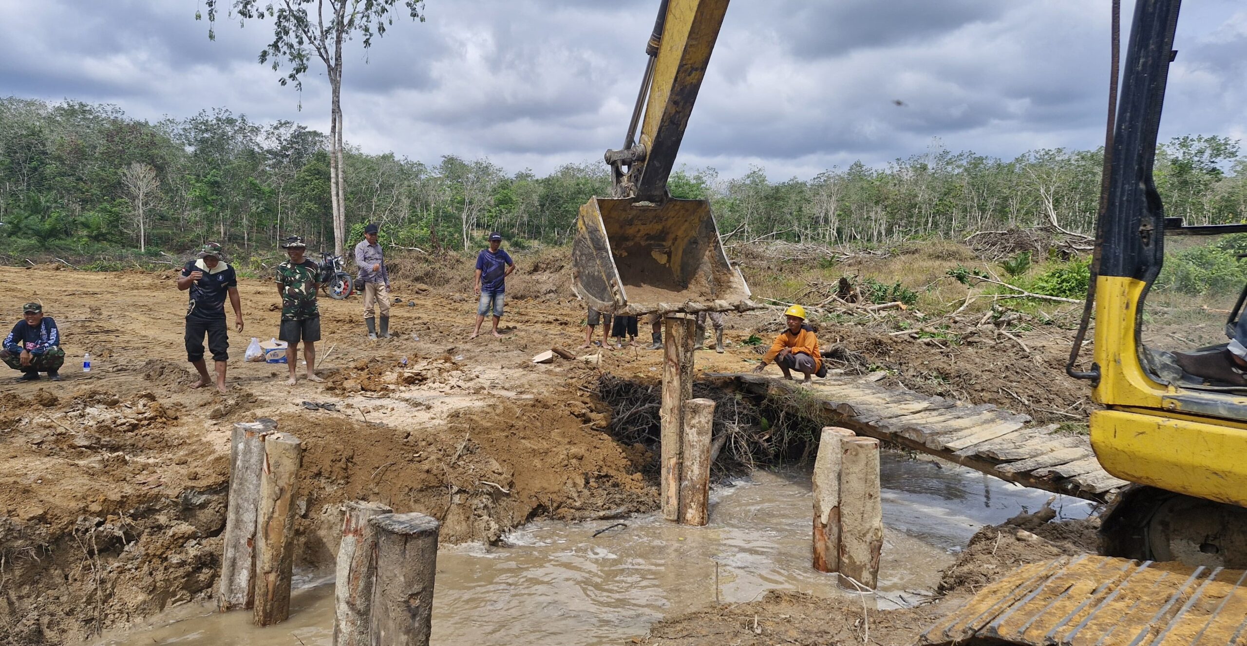 Jembatan tersebut dibuat lantaran terdapat parit di jalan sepanjang 5 kilometer yang dibangun melalui program TMMD ke 127 Kodim 0415/Jambi.