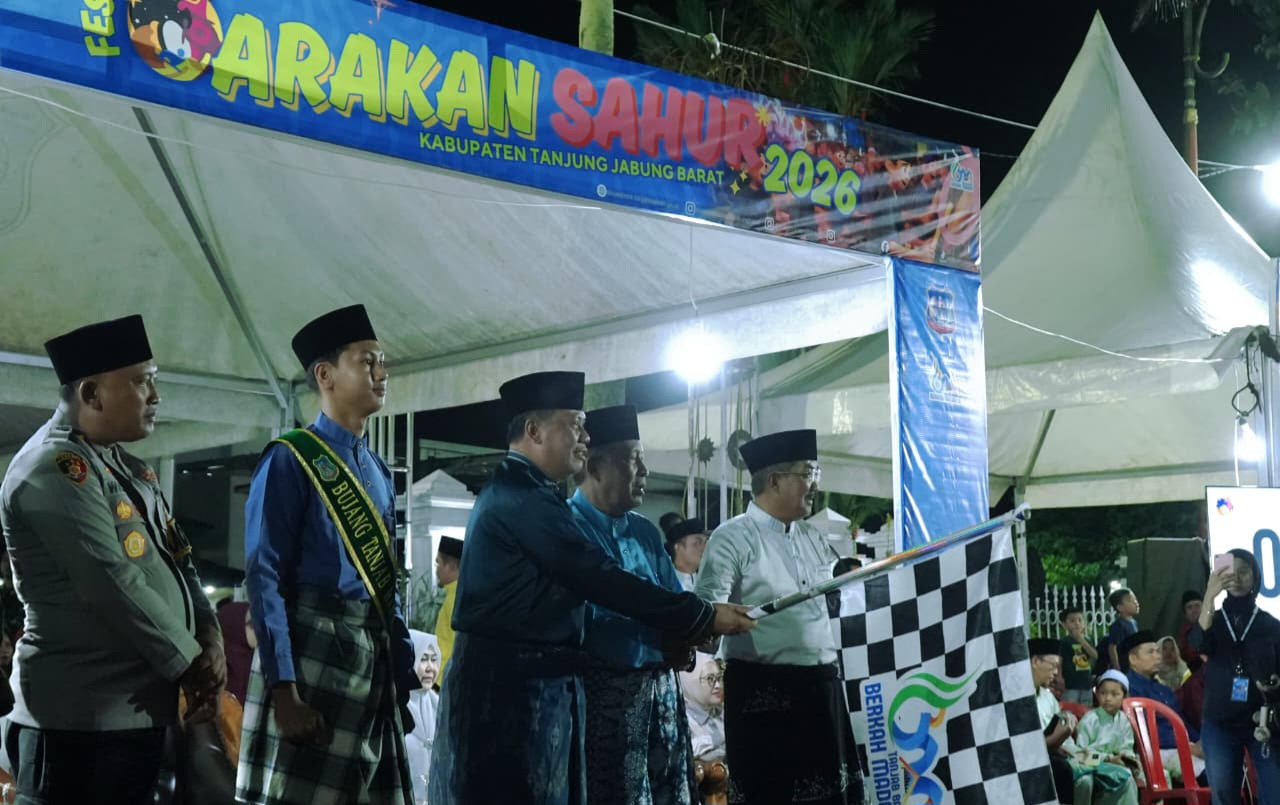 Sementara itu, Bupati Tanjung Jabung Barat H. Anwar Sadat menyampaikan apresiasi atas terselenggaranya Festival Arakan Sahur di malam-malam Ramadhan 1447 Hijriah.