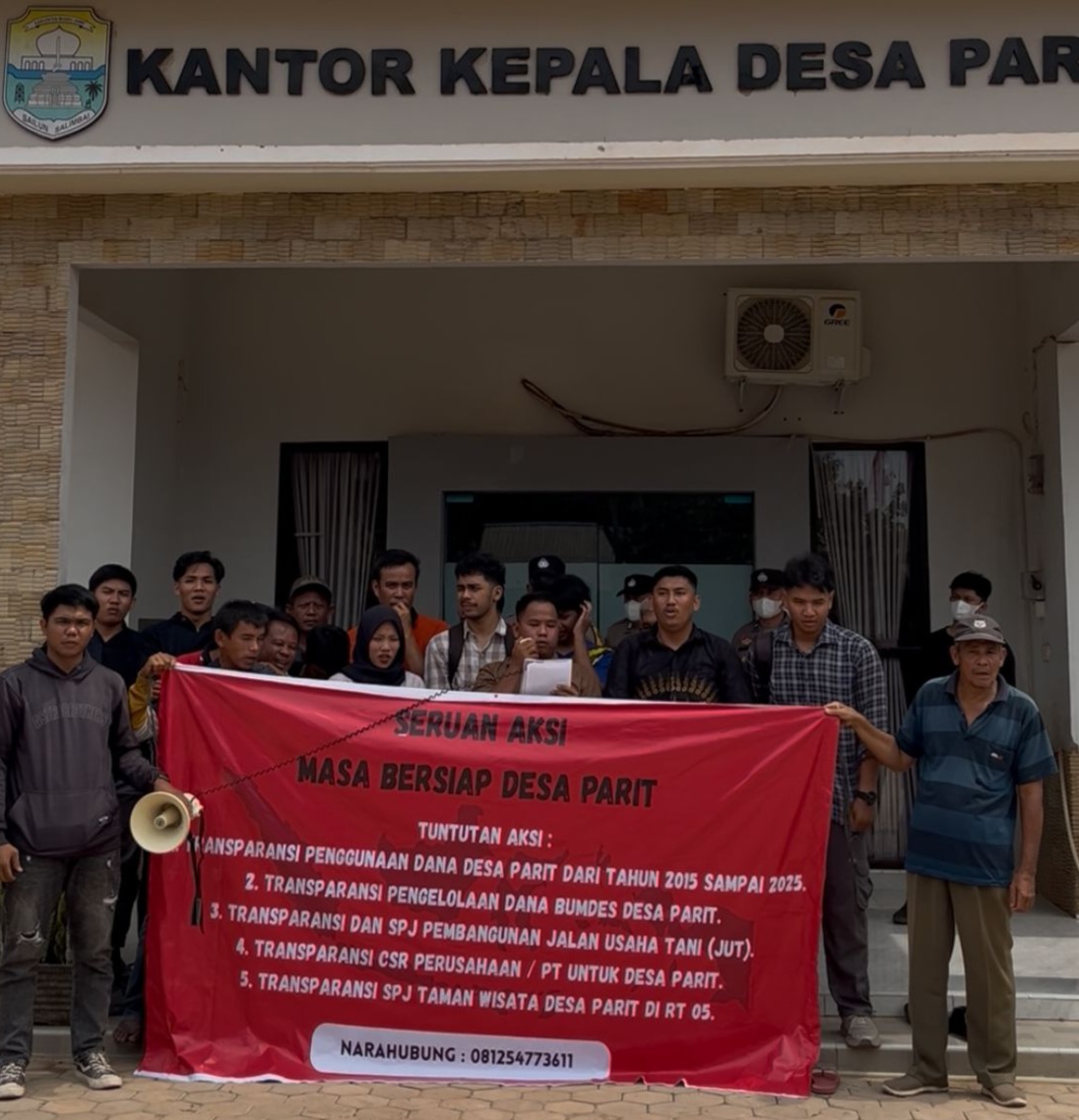 Aliansi Masyarakat Desa Parit menyampaikan lima tuntutan utama kepada pemerintah desa, yakni:
