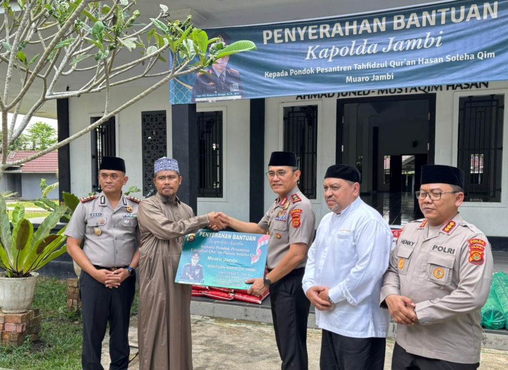 Dalam kesempatan tersebut, Kapolda Jambi juga menyerahkan bantuan berupa empat roll sajadah, dua unit kipas angin, satu unit genset, serta 20 karung beras guna mendukung kegiatan operasional dan pembinaan santri di pondok pesantren tersebut.