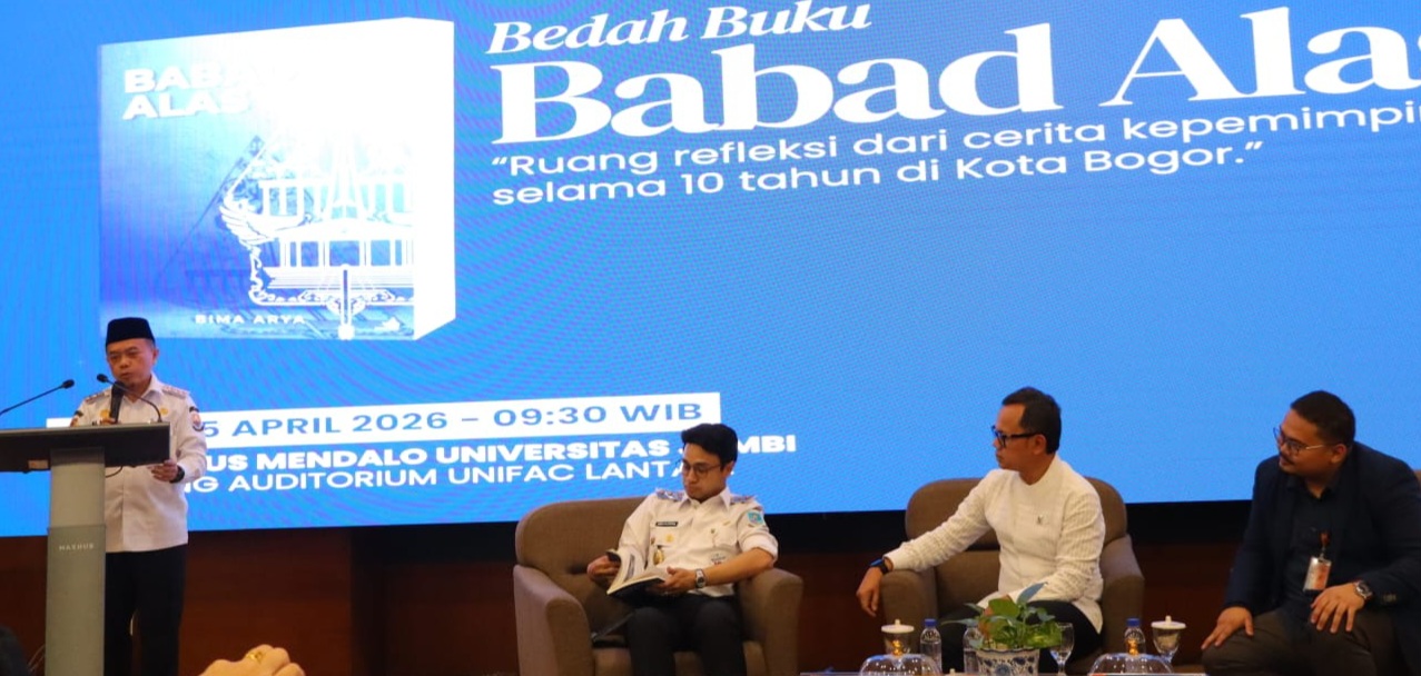 MUAROJAMBI.PILARDAERAH.COM — Gubernur Jambi Dr. H. Al Haris, S.Sos, MH menghadiri Bedah Buku Babad Alas, Ruang Refleksi dari Cerita Kepemimpinan Selama 10 Tahun di Kota Bogor, karya autobiografi-reflektif yang ditulis oleh Bima Arya Sugiarto, Wali Kota Bogor periode 2014-2024, yang kini menjabat sebagai Wakil Menteri Dalam Negeri (Wamendagri) RI. Bedah Buku setebal 184 halaman tersebut berlangsung di Kampus Mandalo Universitas Jambi Ruang Auditorium Unifac Lantai I, Rabu (15/04/2026).