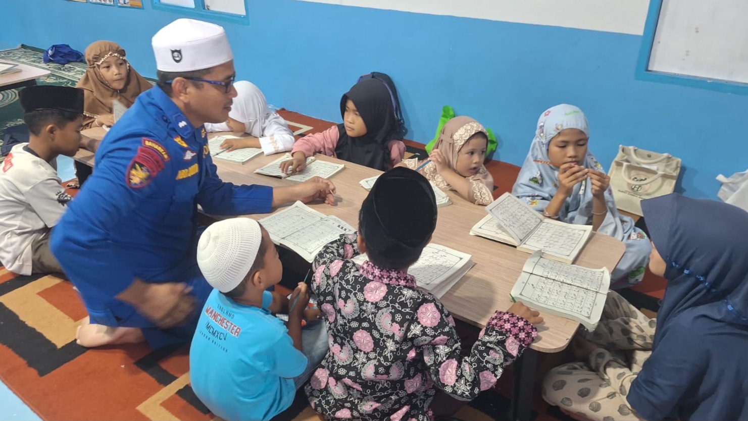 Kegiatan yang berlangsung di ruang belajar Rumah Baca Bhayangkara Bahari tersebut diisi dengan pembelajaran membaca Al-Qur’an bagi anak-anak setempat. Sebanyak 30 anak turut ambil bagian, terdiri dari 9 anak laki-laki dan 21 anak perempuan, dengan pendampingan empat tenaga pengajar, termasuk satu personel Ditpolairud Polda Jambi Aipda Abdul Qodir serta tiga ustadz.