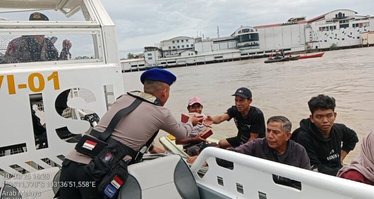 JAMBI.PILARDAERAH.COM — Personel Ditpolairud Polda Jambi melaksanakan kegiatan pembagian takjil kepada masyarakat